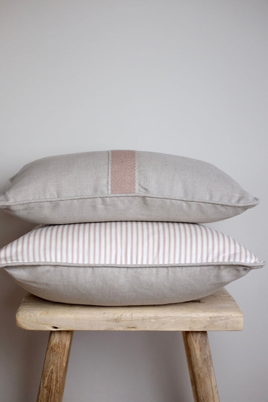 100% Irish Linen & Cotton Ticking Cushion, Natural