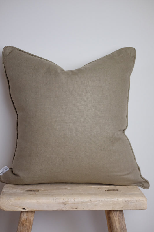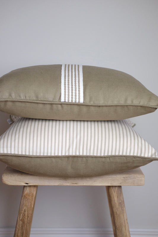 100% Irish Linen & Cotton Ticking Cushion, Khaki